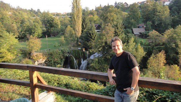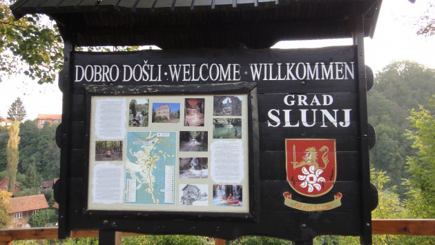 De Zagreb, saí em direção ao Parque Plitvice Jezera, que fica, aproximadamente, a 02h30 de carro (165 km) da capital. Os primeiros 50 km são feitos por estradas levemente sinuosas, e o restante, pela autoestrada A1. Cerca de 30 minutos antes de chegar em Plitvice, parei em Slunj para apreciar uma bela queda d‘água. Ela foi como um aperitivo para o que eu verei amanhã: