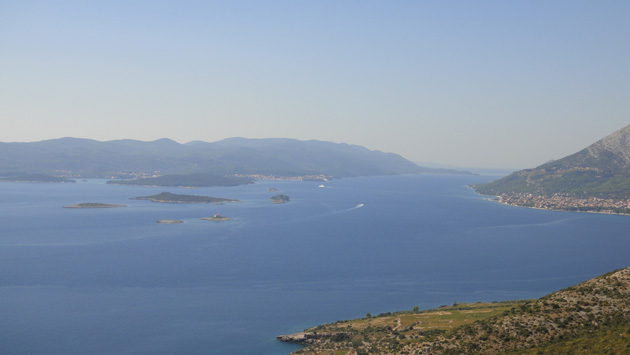 O porto fica a apenas cinco minutos do centro, e quinze minutos foi o tempo de travessia até Orebic. De lá, sai rumo a Ston e, no caminho, encontravam-se mais lindas paisagens e várias vinículas.