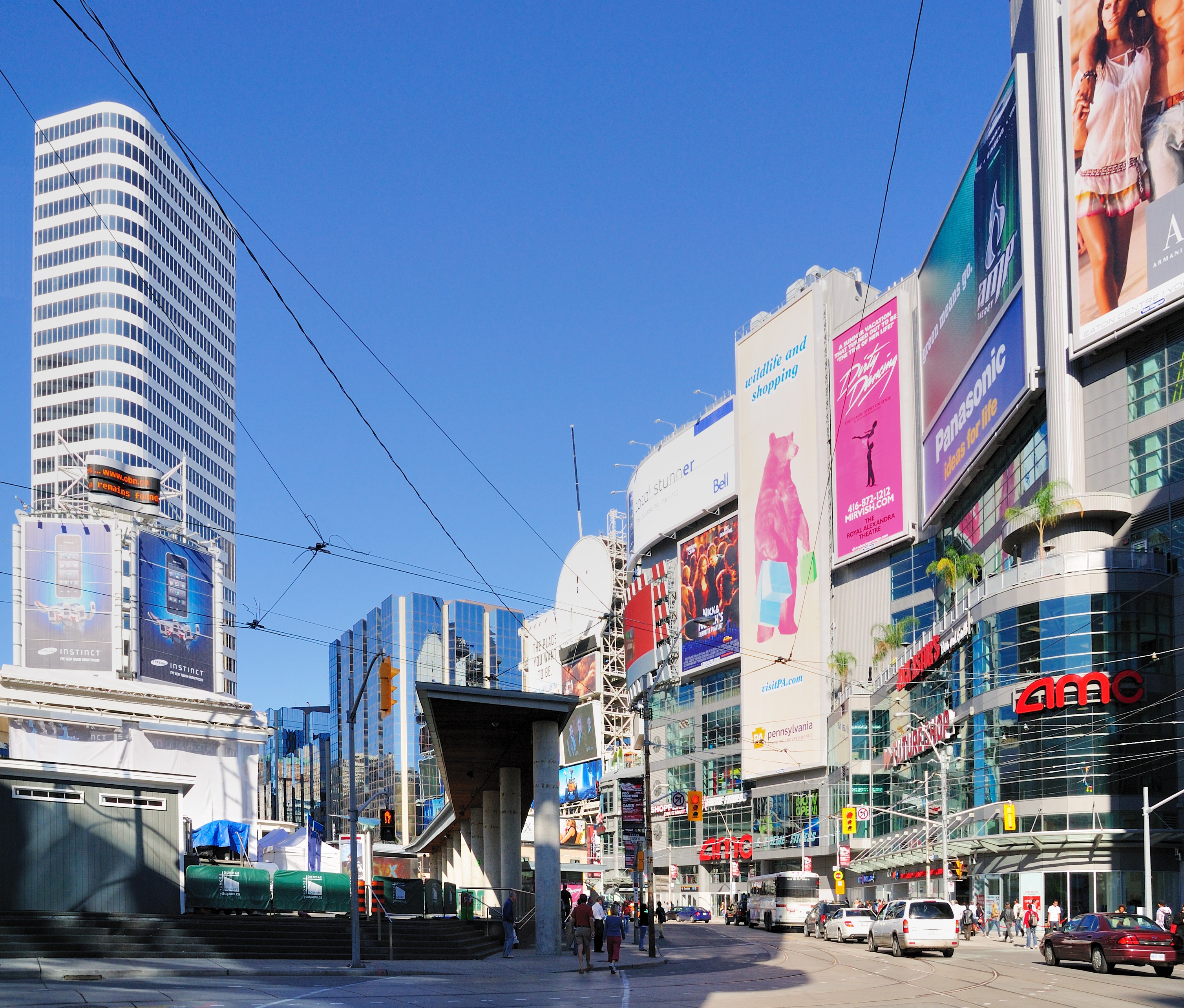 Logo em frente ao Eaton Center encontrei o que parecia uma ”Times Square” em Toronto, chamada de Dundas Square. Muita gente se reúne ali no final do dia para um happy hour.