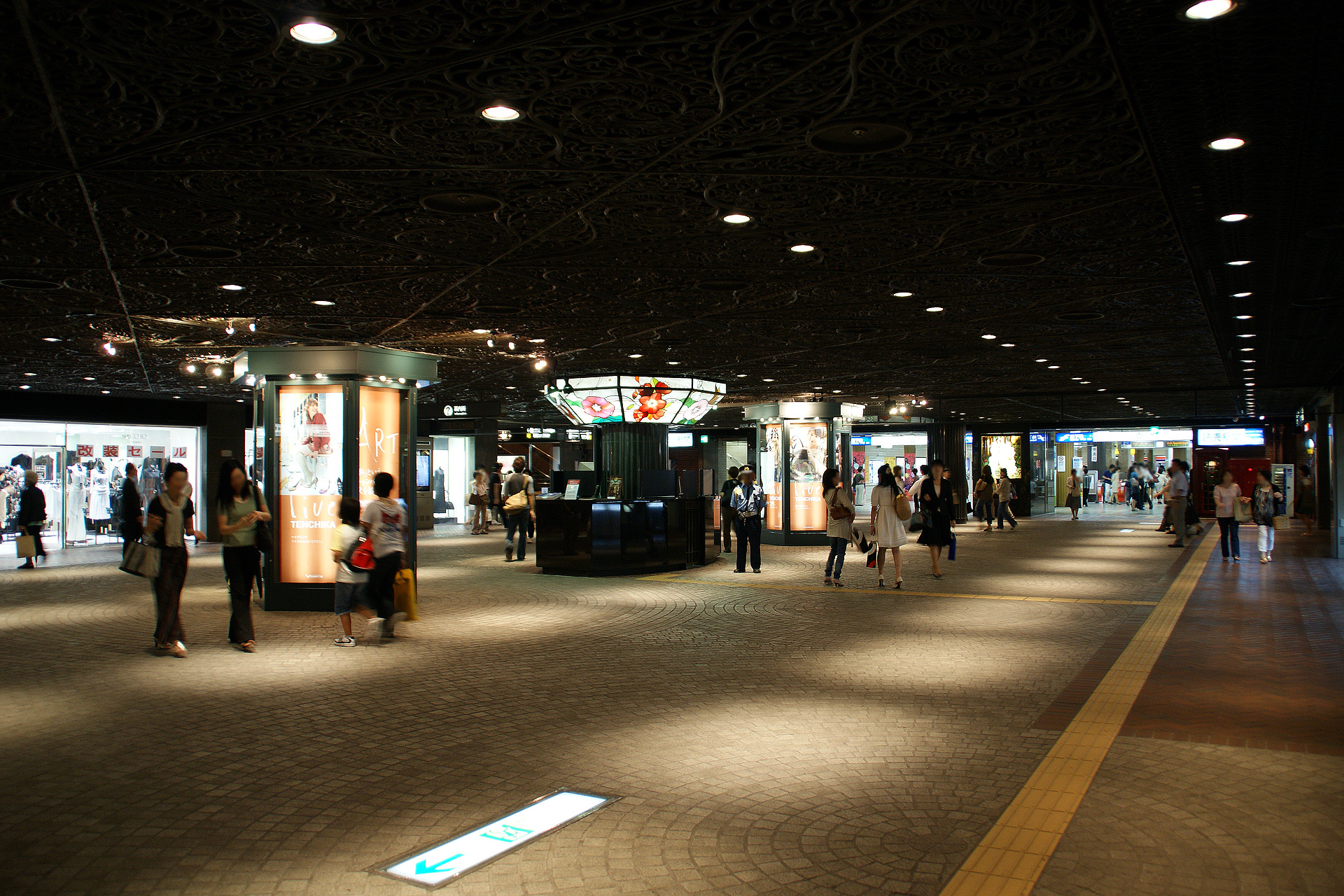 Todo esse espaço é conectado por túneis de baixo da cidade onde as pessoas podem se locomover, entrar em hotéis, prédios comerciais e lojas, sem passar pela rua no período do inverno rigoroso.